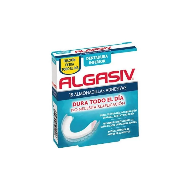 Las almohadillas Algasiv llenan el espacio entre las encías y la dentadura postiza, y se convierten en una barrera que evita que se introduzcan restos de alimentos. La forma de la boca va cambiando y con los años la mucosa bucal se vuelve más delgada y sensible. Por otra parte, debido a la reabsorción natural del hueso y a la retracción de las encías, las dentaduras postizas pueden tener más problemas de estabilidad, especialmente en la mandíbula inferior. Es importante visitar al dentista con regularidad. Las nuevas almohadillas adhesivas Algasiv pueden ayudar gracias a su triple acción.
