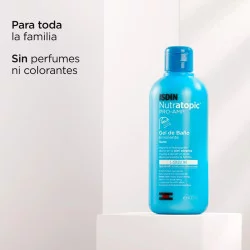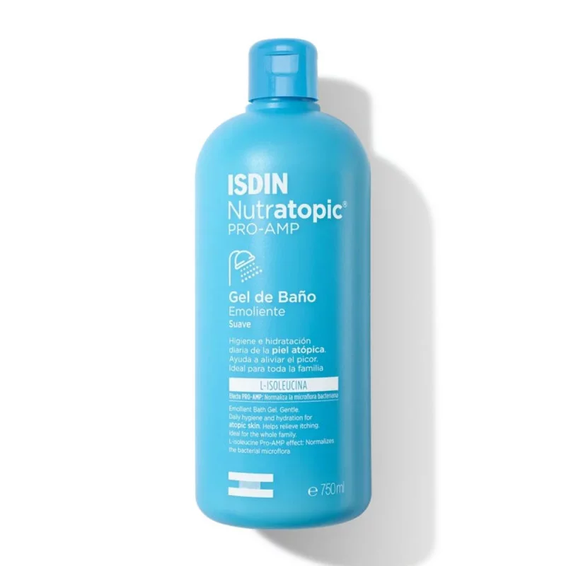 Limpia la piel atópica a diario con Nutratopic® Pro-AMP® Gel de Baño Emoliente. Su fórmula contiene ingredientes que hidratan y limpian de forma suave, ayudando a evitar el picor asociado a la piel atópica.