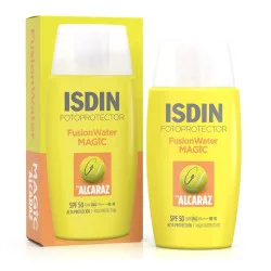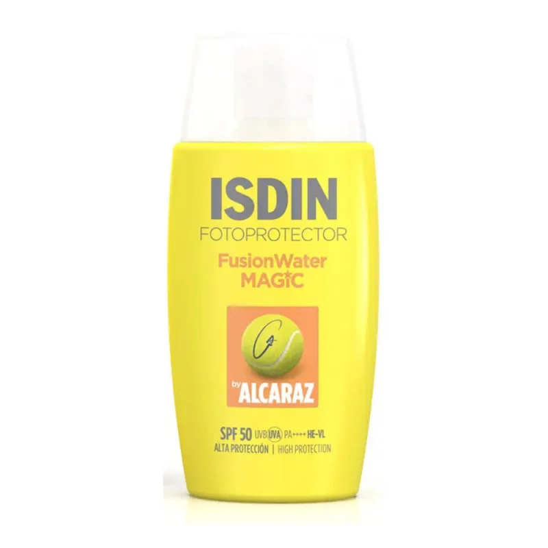 Saca tu mejor versión con el fotoprotector facial ultraligero de uso diario Fusion Water MAGIC by Alcaraz SPF 50. Aporta efecto refrescante y, gracias al Heat Stress Protect, protege la piel frente a los radicales libres generados por el calor derivado de la práctica deportiva.