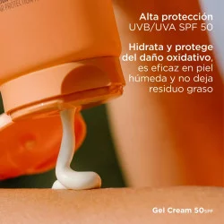 Protege tu piel con Gel Cream SPF 50, el fotoprotector de rápida absorción que hidrata como una crema y refresca como un gel. Su fórmula Wet Skin facilita la aplicación en piel húmeda sin dejar residuo blanco.