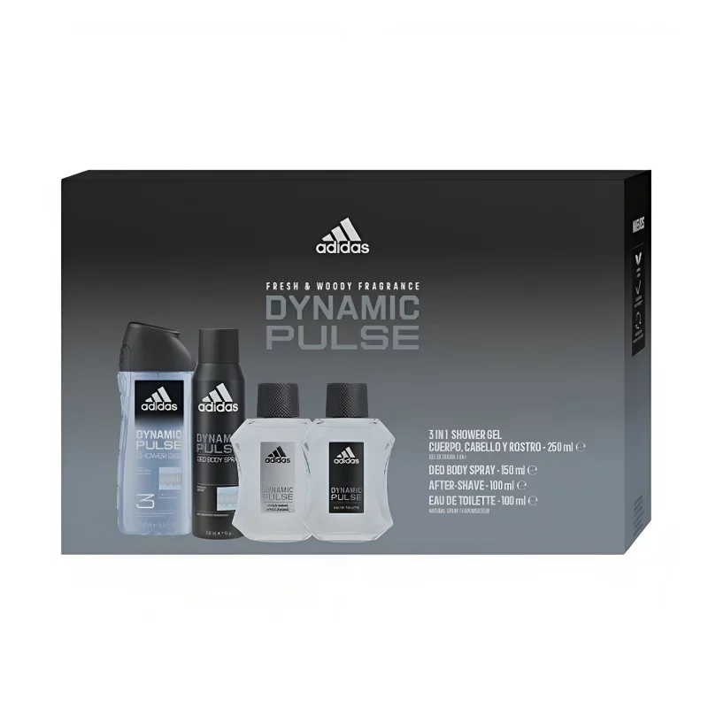 Adidas Dynamic ha lanzado un exquisito obsequio que incluye eau de toilette de 100 ml, spray corporal de 150 ml, loción de 250 ml y aftershave de 100 ml.