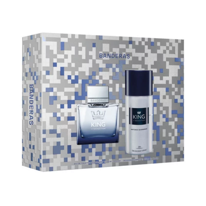 En el perfume King of Seduction de Banderas el elegante frescor cítrico se combina con la calidez, la sofisticación del cardamomo y el acorde marino para realzarse en el fondo con la fuerza masculina del ámbar y el cedro. Un perfume de hombre, en un elegante y sofisticado frasco azul, con el que descubrir el verdadero significado de la seducción.
