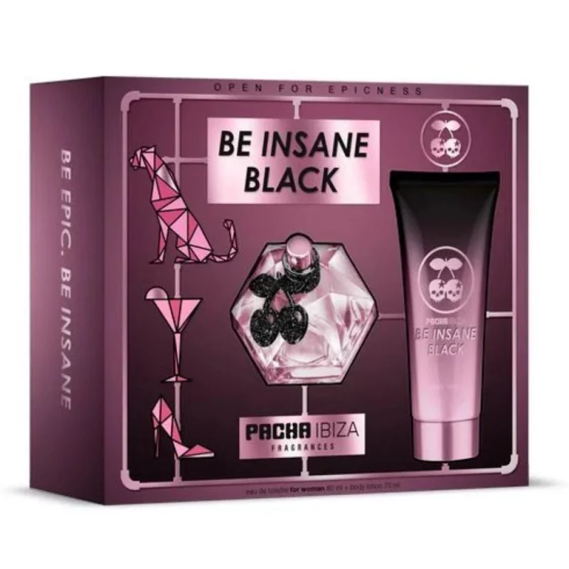 Vive el ritmo de Pacha Ibiza con nuestra fragancia Be Insane Black. Déjate desafiar en esta noche de chicas. Un aroma floral ambarino inspirado en las luces de discoteca que iluminará tu cutis. Su decoración representa el espíritu puro de Pacha, con las famosas cerezas transformadas en calaveras, simbolizando la alegría de esta fiesta interminable.