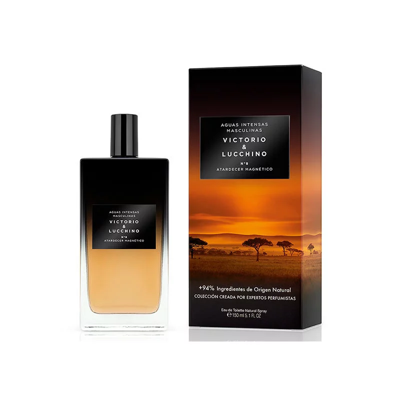 En la colección Aguas Intensas Masculinas de Victorio & Lucchino. Un Eau de Toilette vegano que contiene 94% de ingredientes de origen natural. Un claro reflejo de la naturaleza que dejará un aroma inolvidable en tu piel.