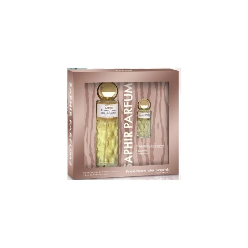 SAPHIR FREEDOM EDP 200 ML+30 ML De la generación conocida como floral, las notas cítricas la convierten en una nueva fragancia que utiliza motivos florales y se combina con otras fragancias marcadas por diversas notas florales.