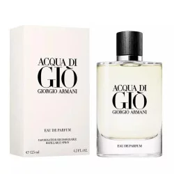 Acqua di Giò Eau de Parfum es la fragancia masculina que representa la frescura poderosa del mar, ahora presentada en un nuevo diseño recargable.