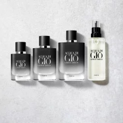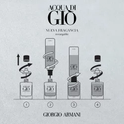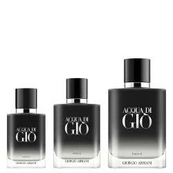 Acqua Di Giò Parfum aporta un frescor intenso a la colección. Sus notas de salida combinan un corazón de bergamota, jengibre y la intensidad de las notas marinas; su corazón fusiona el corazón de geranio bourbon, la esencia de romero y el corazón de salvia sclarea, mientras que un fondo de maderas vibrantes, esencia de pachuli e incienso crea un halo de misterio. Esta fragancia potente se distingue por sus notas de incienso, que aportan una intensidad incandescente a las emblemáticas notas marinas de Acqua di Giò. El diseño del frasco, con su forma elegante y masculina creada en tonos de negro degradado, evoca una nueva excelencia. Como parte del compromiso de Giorgio Armani por un futuro mejor, la fragancia puede recargarse en todos los formatos con el frasco de recarga de 150 ml. El diseño ecosostenible de ACQUA DI DIÒ PARFUM no se limita a su frasco recargable, sino que abarca también unos ingredientes de origen natural y sostenible.