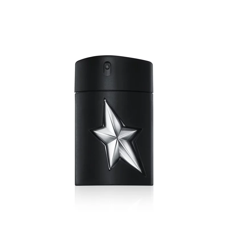 El icónico frasco de Mugler ahora presenta un tono negro suave y táctil, decorado con el icónico emblema de la marca: la estrella en color plateado brillante irradia una luz intensa y penetrante.