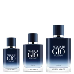Esta fragancia cautivadora evoca una faceta densa, resinosa y mineral de Acqua Di Giò. Estas notas, creadas en torno a notas de bergamota, absoluto balsámico de jara y la riqueza de una esencia de hipérico, prestan su profundidad e intensidad a Acqua Di Giò Profondo Parfum. La fragancia evoca la infinidad del océano y se presenta en un frasco azul oscuro, con un tono que pasa del azul más oscuro en la parte superior al turquesa traslúcido en la inferior.