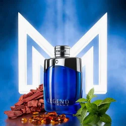 Montblanc Legend Blue es una fragancia repleta de contrastes que celebra al hombre clásico y sofisticado a través de unas notas frescas y amaderadas. Encarna la frescura de la hierbabuena y la madera de cedro y la sensualidad del ambroxan.