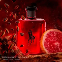 Polo Red es una explosión de seducción creada como un cóctel de tres ingredientes: el pomelo rojo que aporta frescura y energía, el azafrán que añade seducción y las maderas rojas que garantizan profundidad y elegancia a este verdadero tributo a la adrenalina.