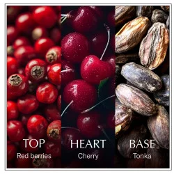 Viaja a los exuberantes jardines de California con el body mist cherry, una esencia afrutada y dulce. Esta encantadora bruma es una combinación equilibrada que rinde homenaje a la abundancia de la naturaleza con toques de bayas rojas especiadas, cereza ácida y un fondo de tonka maderosa.