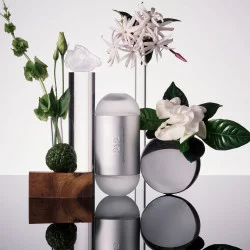 El frasco de 212 NYC mantiene una sensibilidad minimalista con una fragancia en múltiples capas de entusiasta energía en su interior. Presenta una estructura arquitectónica de vidrio y dos frascos de 212, uno para casa y otro para dondequiera que ella vaya.