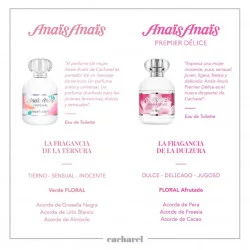 Anaïs Anaïs es una composición en la que maravilla, frescura y ternura se armonizan juntas. Es una escritura olfativa revolucionaria convertida en un gran clásico de la perfumería con notas verdes y potentes que se basan en el jacinto, una celebración que hace gala al romanticismo y al primer amor, el sentimiento más bello y puro que existe.