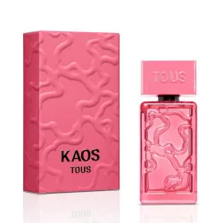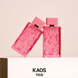La fragancia Eau de Parfum TOUS KAOS con vaporizador capta el espíritu libre y multifacético de la mujer moderna. Inspirado en el icónico estampado KAOS de TOUS, este perfume floral, frutal y amaderado fusiona frescor, sensualidad y magnetismo. La salida chispeante de sorbete de frutos rojos, pera jugosa, bergamota y limón se une a un corazón de jazmín Sambac, rosa y melocotón, para terminar en un fondo sofisticado de maderas blancas, almizcle blanco, musgo cristal y praliné. El frasco se viste del vibrante color PinKaos y muestra las formas abstractas del diseño KAOS en un equilibrio visual perfecto. Ane Ayo y Olivier Cresp firman esta fragancia que sublima la creatividad.
