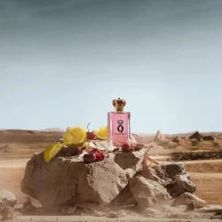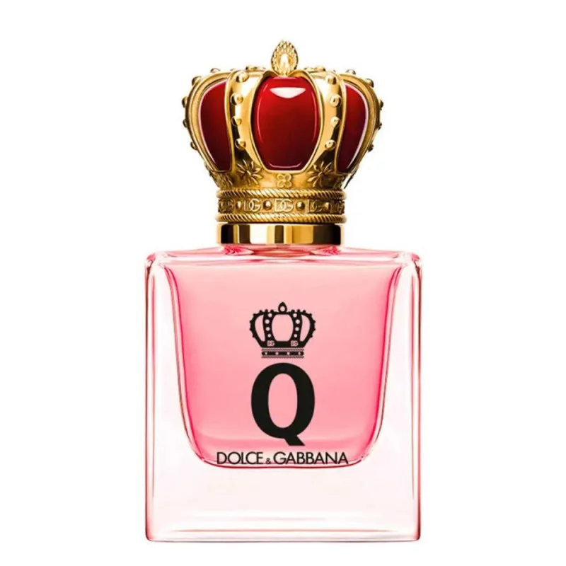 El frasco de Dolce&Gabbana Q Eau de Parfum es de vidrio de gran calidad y líneas robustas, teñido en un delicado color rosa. Su tapón forma una elegante corona dorada realzada por un tono rojo cereza, inspirado en la pasión, el amor y la energía.
