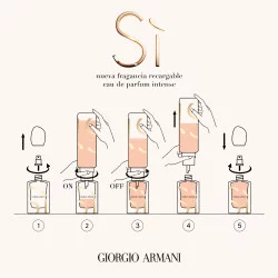 Descubre el poder de Sì con el nuevo Sì Eau de Parfum Intense. Una fragancia elaborada en un frasco que se puede rellenar con un diseño nuevo y único y el aroma del agua. Sus fragancias representan a una mujer fuerte, valiente y dispuesta a afrontar desafíos. Una delicada fragancia femenina para una experiencia maravillosa. Sí, la palabra captura el camino de la vida, ya sea que digas sí a la pasión, la libertad, el amor o a ti mismo.