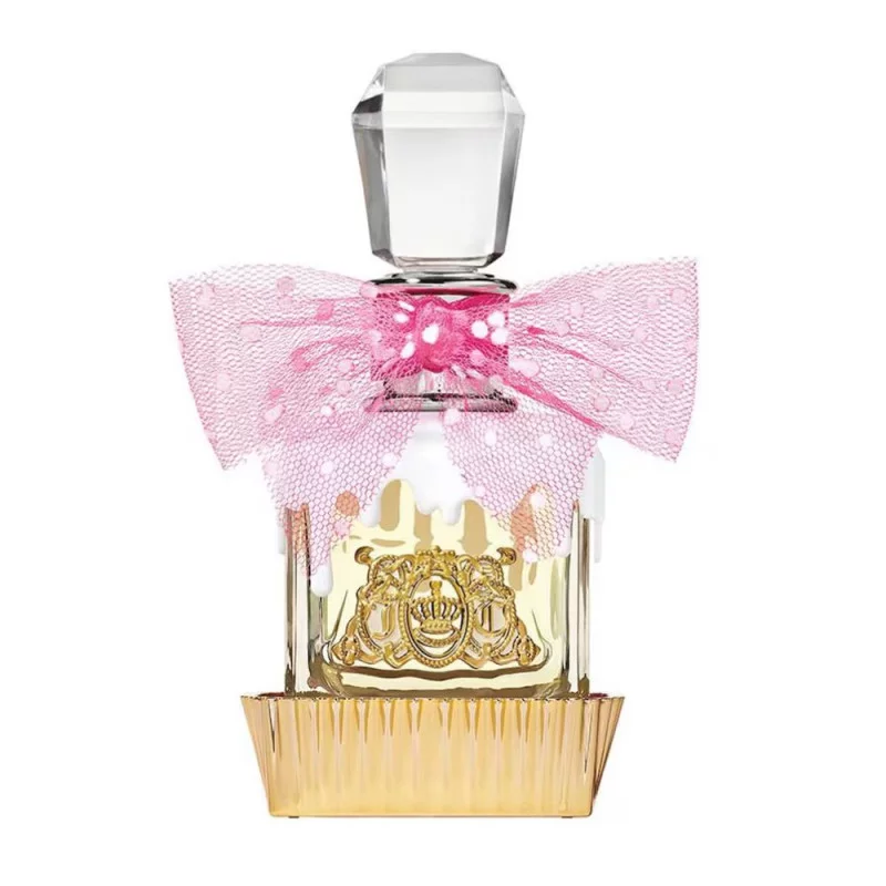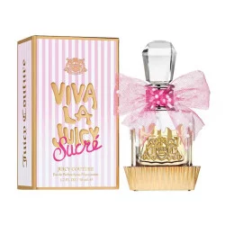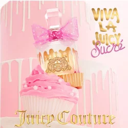 Viva La Juicy Sucre de Juicy Couture, la fragancia perfecta para los golosos, deleita los sentidos con una fragancia realmente deliciosa. El perfume es una receta de apetitosas frutas y flores, que evoca la alegría sin adulterar de una pastelería y las delicias que aguardan en su interior. La fragancia rebosa sabor. La grosella roja tienta con sus ricos matices, mezclados con néctar de melocotón y vainilla para un subidón de azúcar. Rematado con nata montada y un toque de cacao, la fragancia crea una estela inolvidable. El frasco es tan alegre como el perfume que contiene. El frasco dorado se presenta dentro de una bandeja de cupcakes, bañada en glaseado blanco y atada con un lazo para un acabado llamativo.