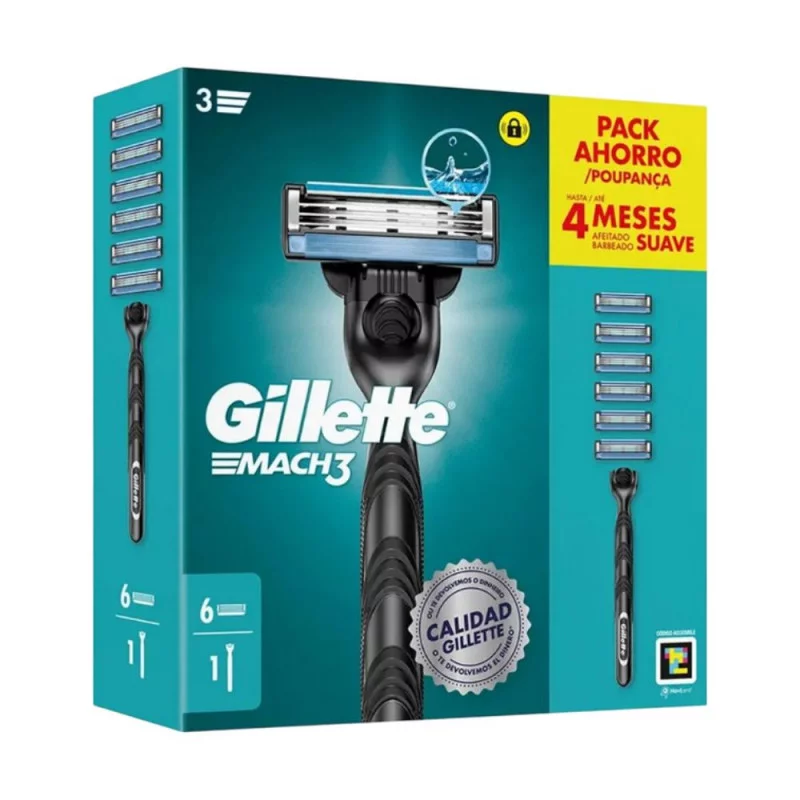 La maquinilla de afeitar para hombre Gillette MACH3 es una maquinilla de 3 hojas hecha para un afeitado limpio clásico y con la barra de gel lubricante mejorada que ayuda al deslizamiento.