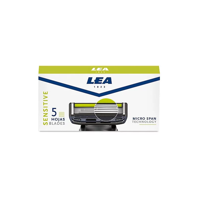 Recambio para el sistema de afeitado LEA SENSITIVE 5. Cabezal con 5 hojas mas 1 hoja de precisión con tecnología micro span, perfectamente alineadas para un apurado perfecto y suave afeitado. El cabezal basculante con banda lubrificada se desliza con suavidad adaptándose al contorno de la cara. Hojas con geometría abierta facilitan la limpieza y aclarado.