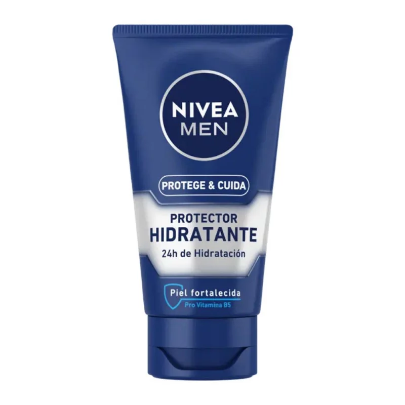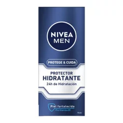 Un afeitado frecuente, el viento, la lluvia y los cambios de temperatura pueden ser un reto para tu piel. Por eso necesita una mayor protección y cuidado. NIVEA MEN Protege & Cuida Hidratante Protector es una crema hidratante facial que cuida la piel masculina, la protege y la mantiene con un aspecto saludable. Su fórmula con Pro-Vitamina B5 y Aloe Vera hidrata durante 24 horas, devuelve la fortaleza a la piel, y regenera tu piel al instante tras el afeitado. No deja sensación grasa y es de rápida absorción.